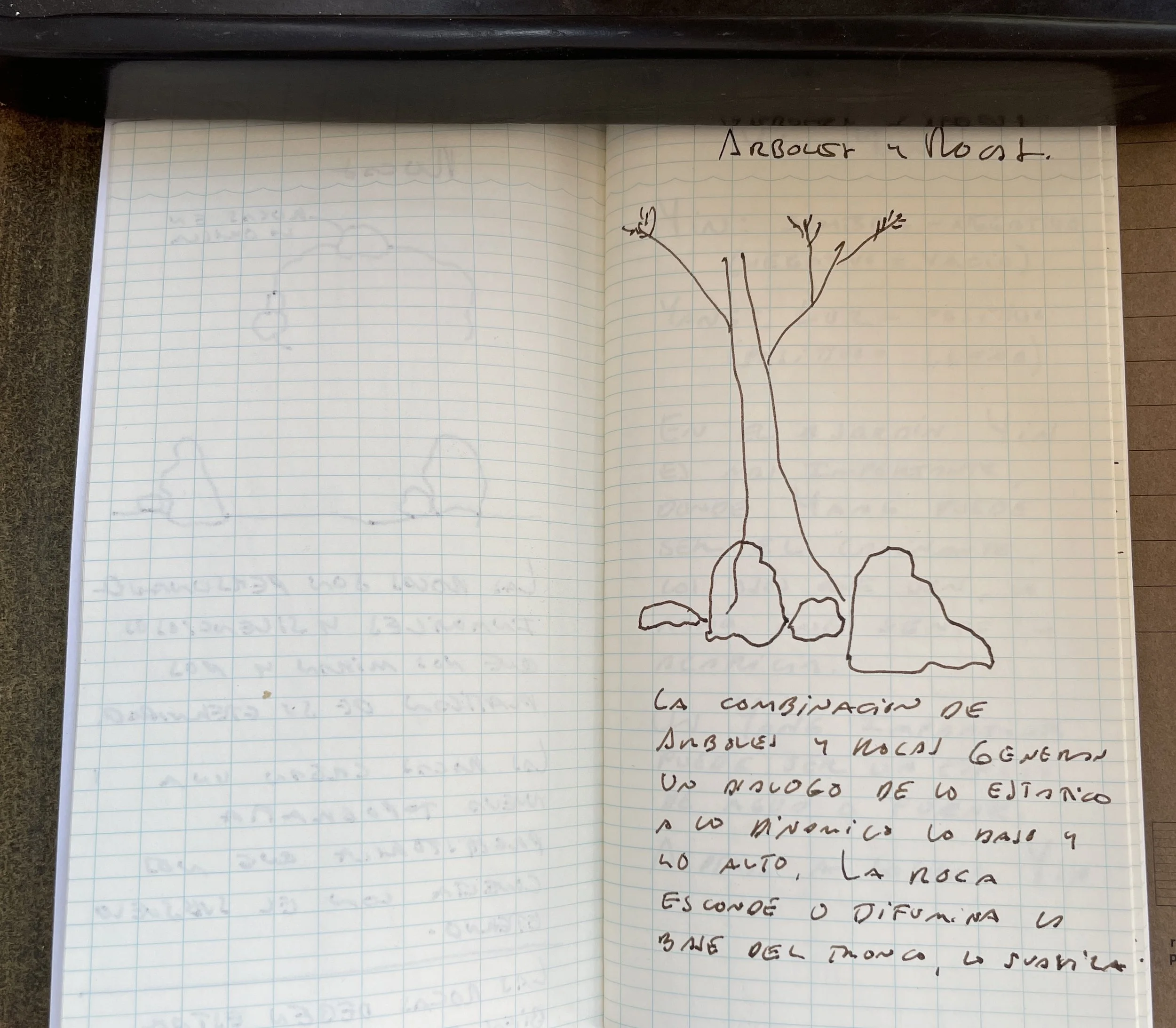 La combinación de Árboles y Rocas abonan un diálogo de lo estático y lo dinámico, lo bajo y lo alto.