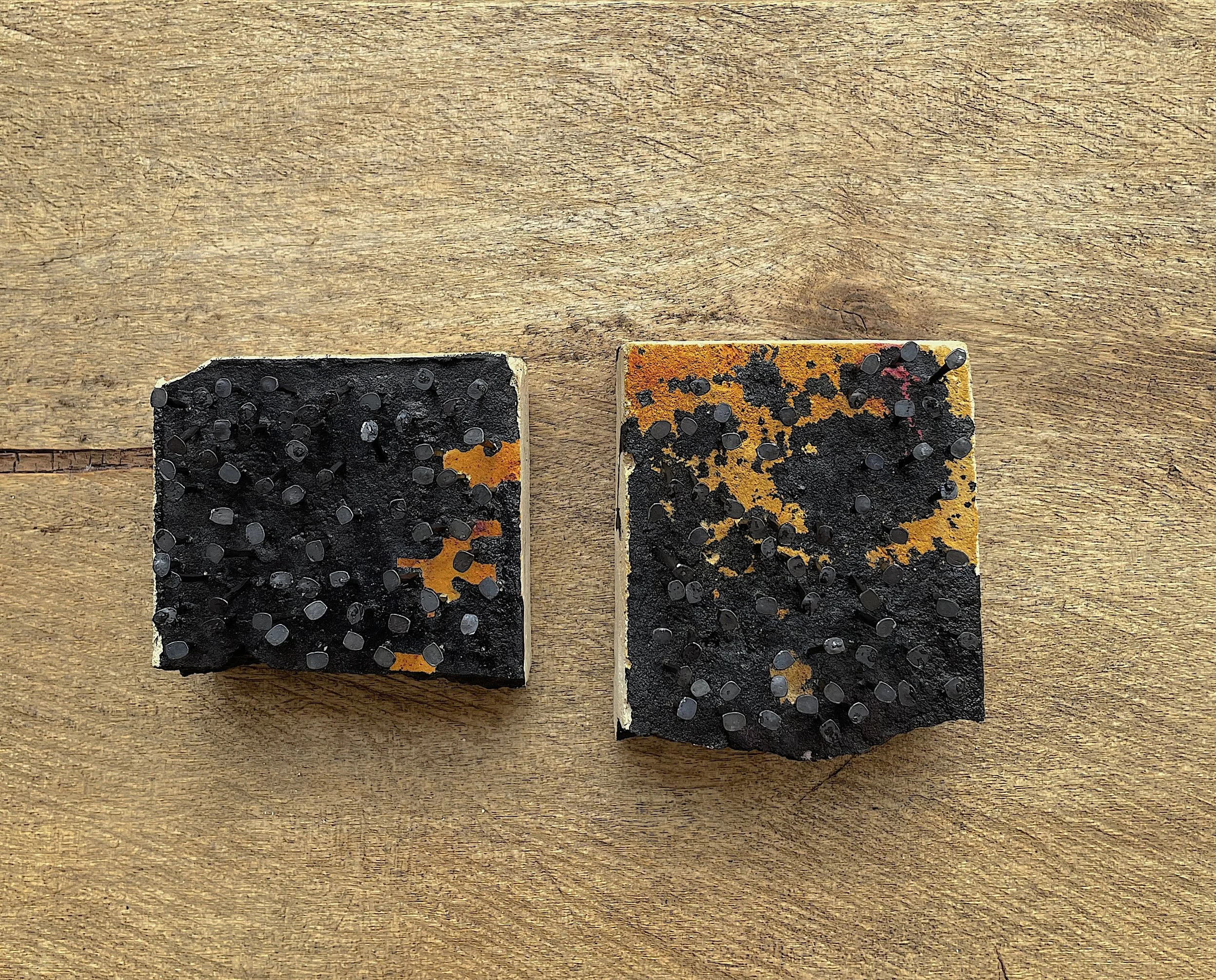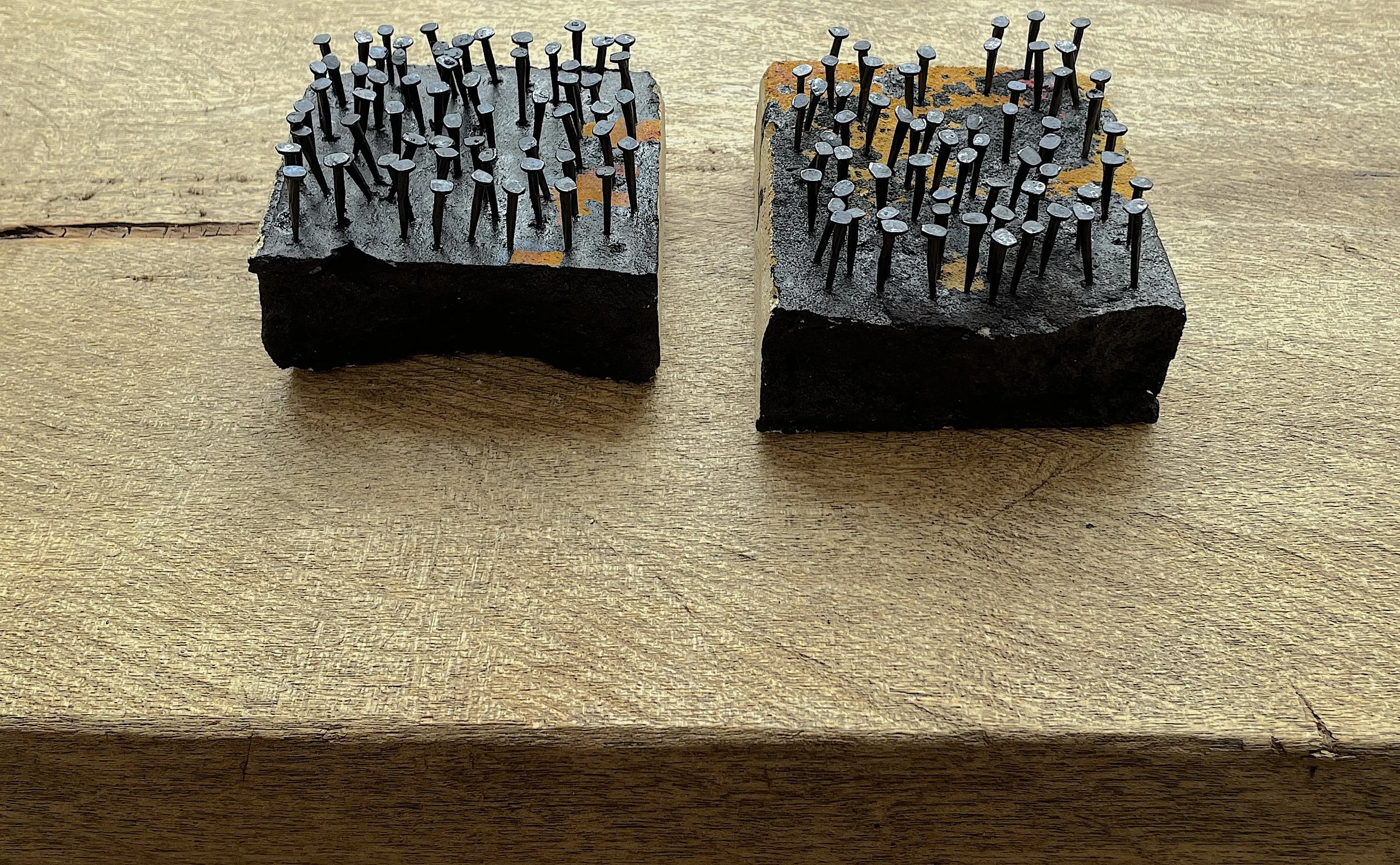 Tabiques Intervenidos Harte Mar 30 Written By Sebastian Mariscal Tabique güero, tinta china negra y sepia, clavos, fuego Sebastian Mariscal